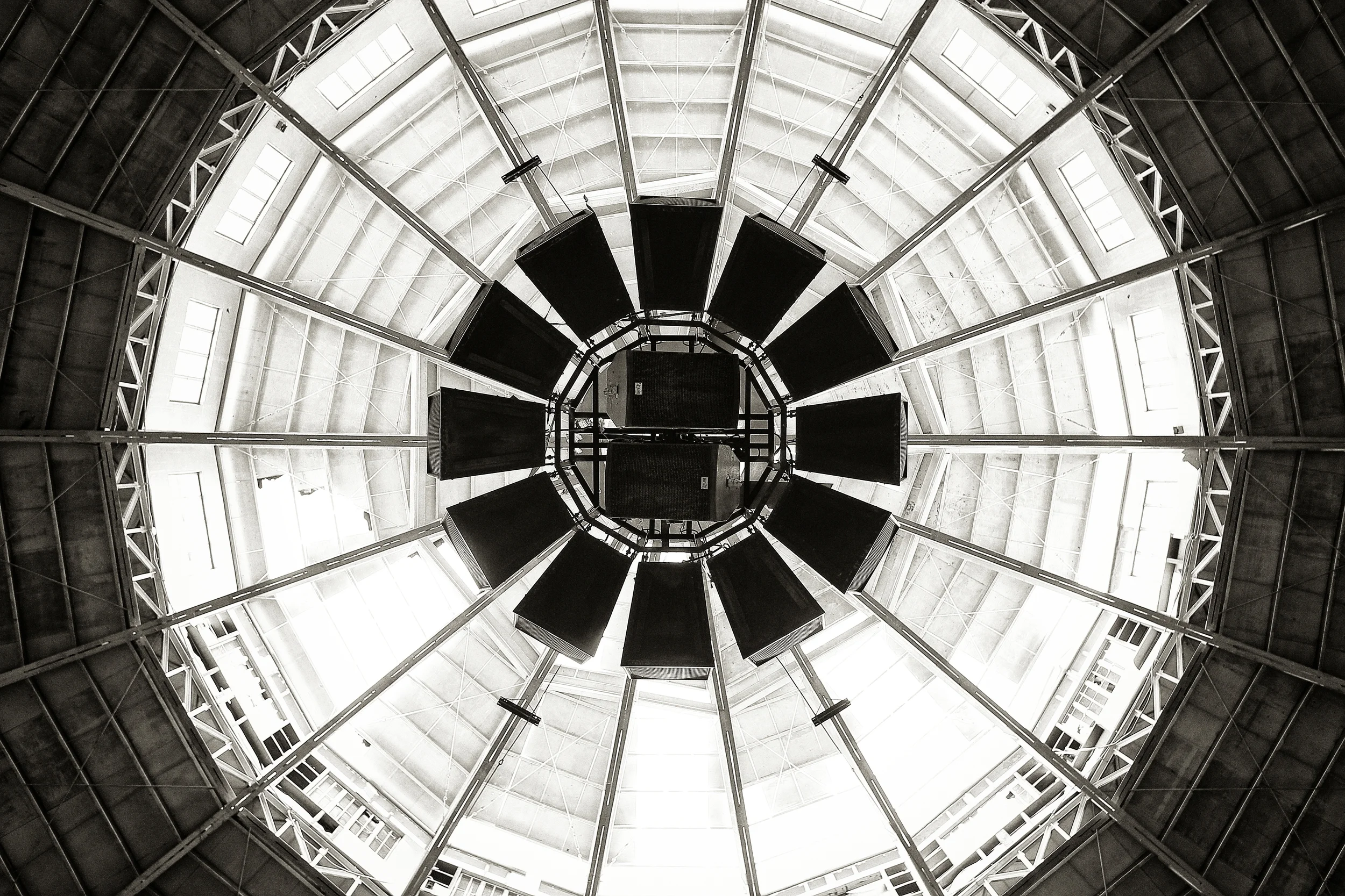 A setup of 14 speakers at Tacloban City Convention Center, Tacloban, Philippines, December 2013.